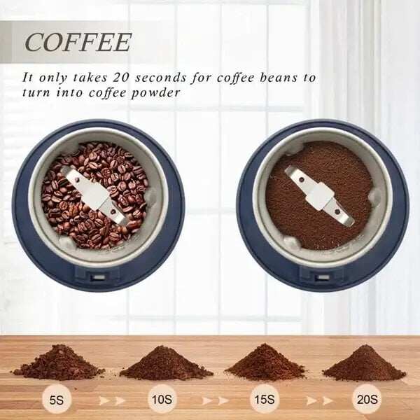 A variety of ingredients easily grind, and with fast grinding speed, you can get fine powder in 10 seconds. You can manually grind a cup of coffee to refresh yourself.