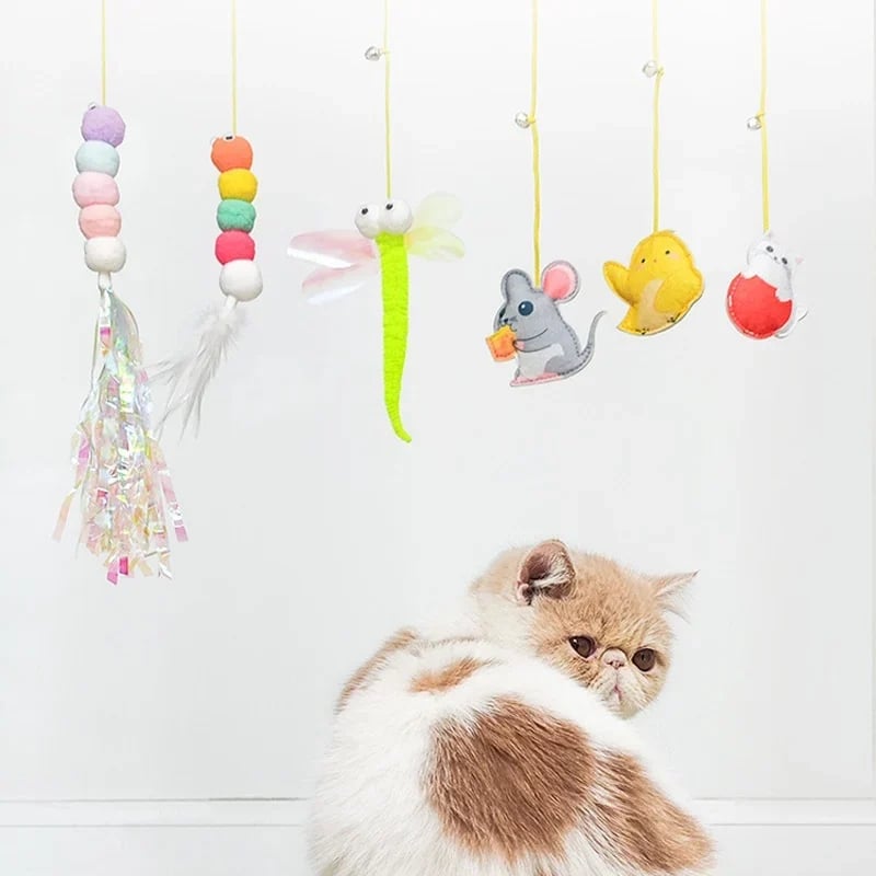 【Interactive cat toys】 Can be hung on the door frame, doorknob, every time your cat touch this cat toy, plush toy moves like magic, cat toy with bell, intrigue your cat to kick and play.